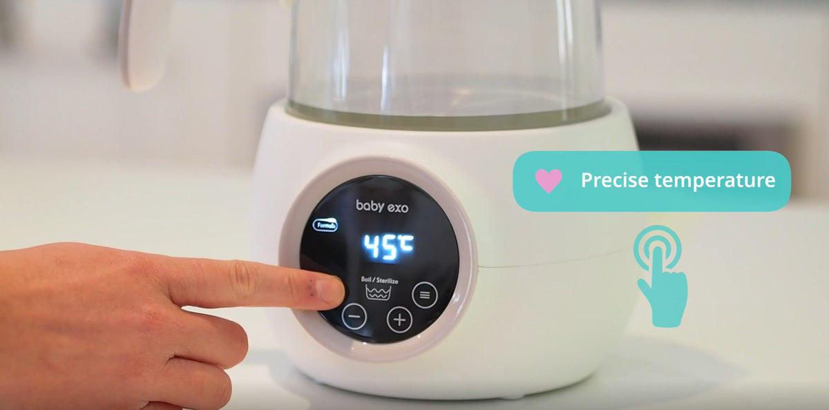Sie können die perfekte Flasche für Ihr Baby anpassen, indem Sie 0,5-Unzen-Schritte zwischen 1 und 8 Unzen, Temperatureinstellungen von 104℉ bis 158℉ oder nur die Abgabe von Wasser wählen